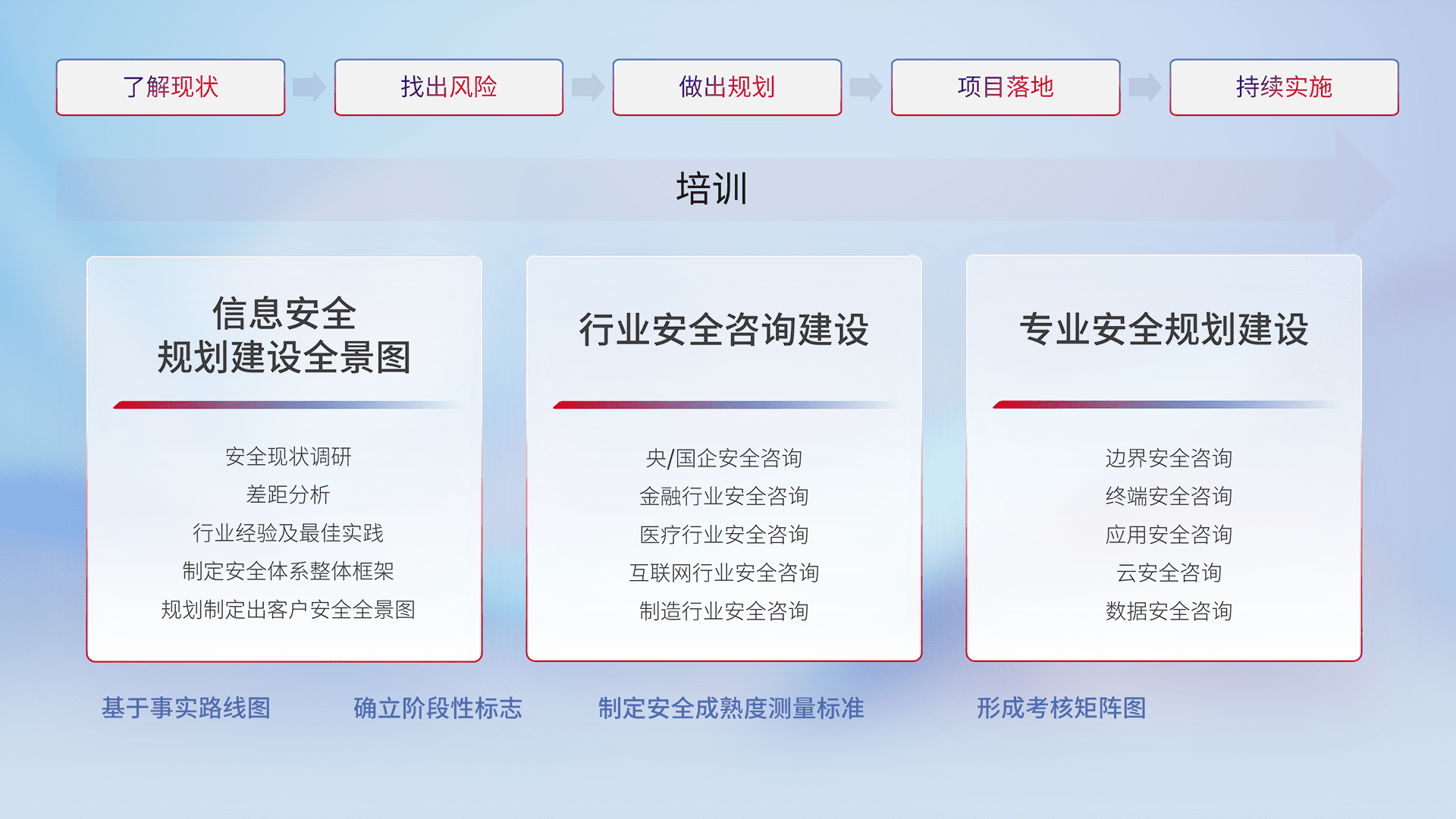 针对客户行业特性,,将宏观的安全战略和需求,,通过专业的交付服务,,实现项目落地,,,,为客户提供标准规范的集成交付服务。。。